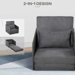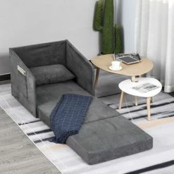 This convertible single sofa bed is a must in any home while reading or listening to music. You can relax for sitting or sleeping at your needs. Made of a quality metal frame for a sturdy construction and covered with a faux suede for skin-friendly. The sofa chair comes complete with armrests and a storage pockets on each side, also equipped with a pillow for extra comfort and will give you the perfect combination as a sofa bed. A great sleeping solution for limited space with this folding bed.