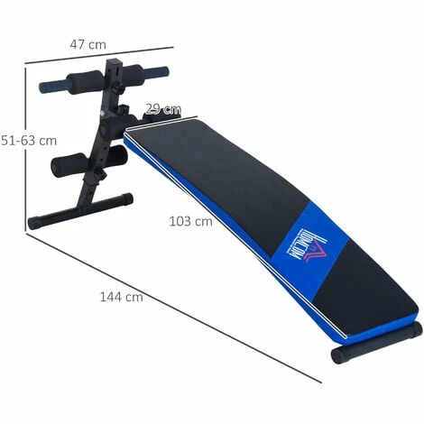 The HOMCOM Sit-up bench allows you to perform a variety of exercises. It is the natural choice for users choosing to workout in the comfort of their homes, with its durable but compact and slim design. You can strengthen your abdominal muscles in an inclined position on the lying area. Suitable for office or home gym offering you a rapid path to good health physical fitness and the body you really want.