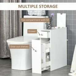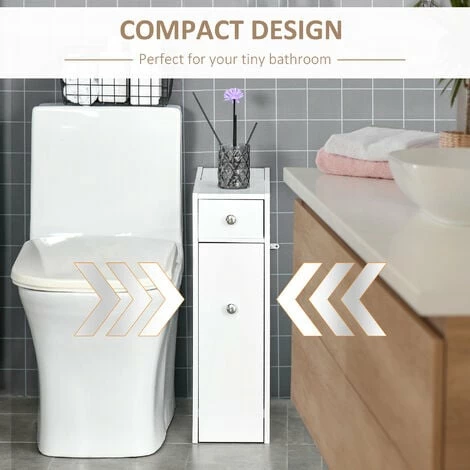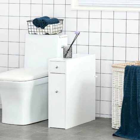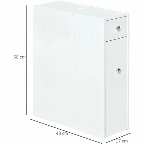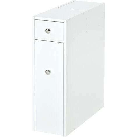 Maximise space and minimise clutter with this bathroom cabinet from HOMCOM. Made into a slimline design that measures just 17cm in width, it will fit into a wealth of spaces, making it great for even the smallest of bathrooms. Crafted from MDF with a fresh white paint finish, this unit is built to be a mainstay in your home furniture for years to come, with it featuring a large slide out bottom draw, a top draw and a top compartment, allowing you to store all your toiletries, towels, make-up and more with ease. Beautifully simple, it will blend into all style decors seamlessly.