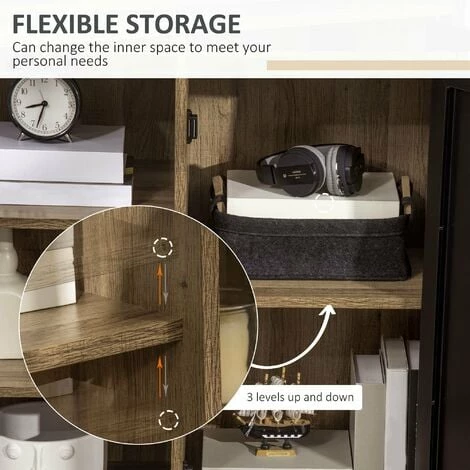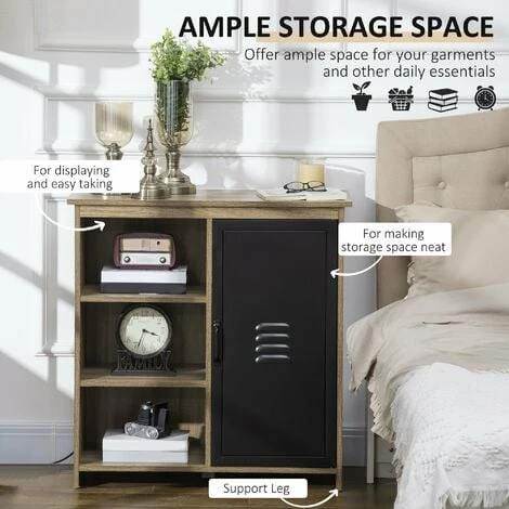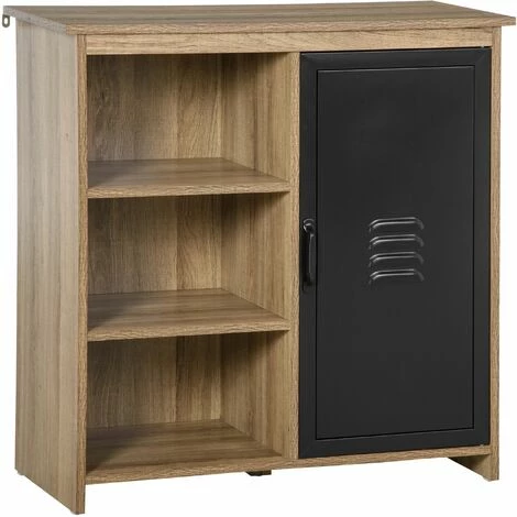 Retro style with an industrial touch. This storage cabinet, from HOMCOM, blends a boxy brown frame with a matte black door for something which is different, but oh so cool. It features three side shelves for open display, with a storage cabinet for discreet holding space. Adjustable shelf for customized storage. Something new for the new season.
