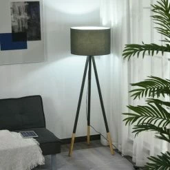 Say hello to beautiful and chic style for your home with our floor lamps from HOMCOM. Steel frame and tripod design for a solid and balance structure. Natural-finish wood is used on the end for a beautiful contrasting effect to the overall grey appearance. The tripod lamp features a polycotton lampshade to allow light to diffuse out gently, creating a warm and welcoming atmosphere. It’s finished with a long electric cable, which also features the foot switch to turn it on and off easily.