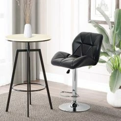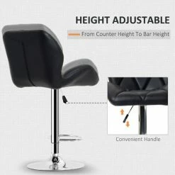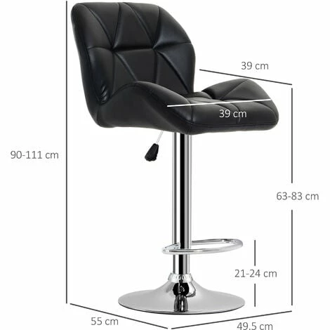This HOMCOM bar stool comes with a full back support with a modern diamond style, it is made with PU and a chrome base. The breakfast bar stool can also be moved and adjusted in height between 90 and 111cm and has a foot support for comfort, It has a stylish and modern feel with a comfortable seating position. It can be used in the kitchen with your breakfast bar, in the lounge and would suit any room décor.