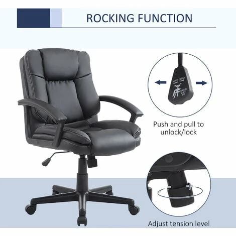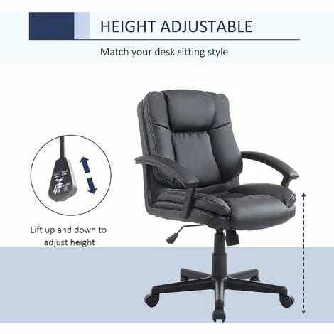 This HOMCOM office chair will be a great addition to any home office. The comfy chair features a high back, fixed armrests, and adjustable height to support your body when seated. Made of PU leather seat and back which is filled with a thick sponge to give you optimum comfort. The swivel chair has a 360° swivel base with five wheels for easy movement without standing up. Take the hassle out of chair shopping with this pc chair with HOMCOM.