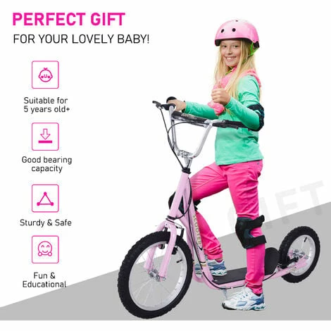 Kids will enjoy riding this HOMCOM scooter everywhere they go. With adjustable handlebars, children of different heights and ages can join the fun. They will stand on a wide foot deck for perfect balance, whilst the front and rear brakes bring the scooter to a swift stop when necessary. Whether it’s the school run, around the park or up and down the street, this is the perfect scooter for kids, making outdoors extra special.