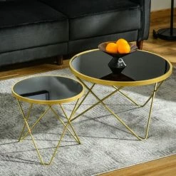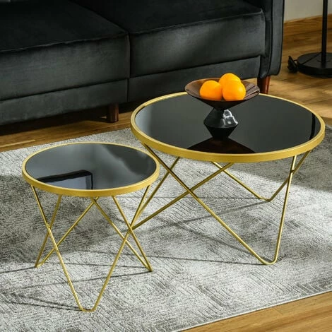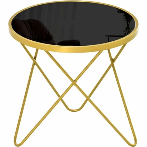 Be bold and daring with your home furnishings this season: bring this standout coffee table, from HOMCOM, into your home or office space. It combines a gold-tone frame with a black top, allowing both colours to contrast and complement each other beautifully. The frame, made from steel for strength, is fitted with crossed-hairpin shaped legs for balance. Glass table top is flat so you can hold everything, smooth to touch so it wipes clean easily.