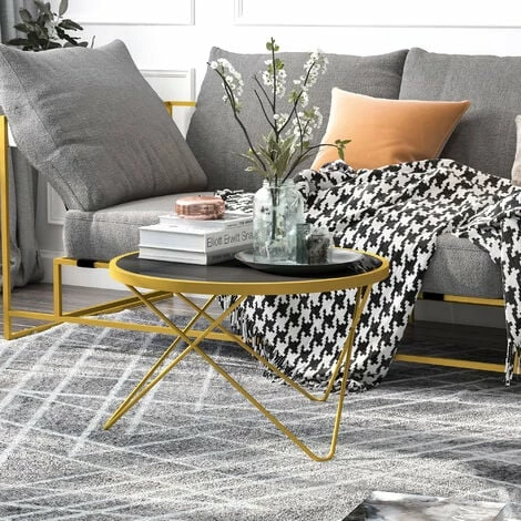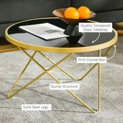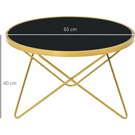 Be bold and daring with your home furnishings this season: bring this standout coffee table, from HOMCOM, into your home or office space. It combines a gold-tone frame with a black top, allowing both colours to contrast and complement each other beautifully. The frame, made from steel for strength, is fitted with crossed-hairpin shaped legs for balance. Glass table top is flat so you can hold everything, smooth to touch so it wipes clean easily.