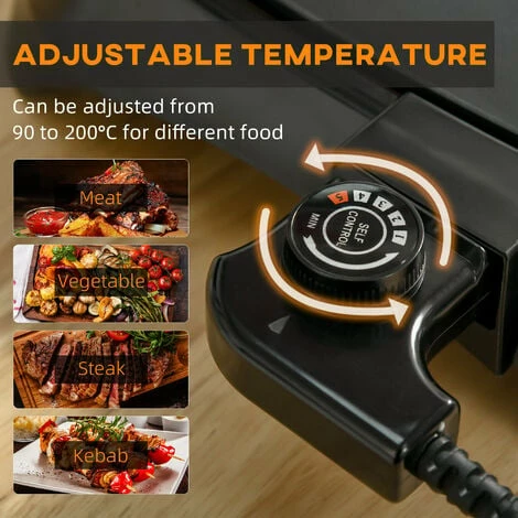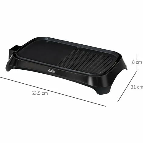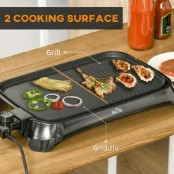 Do you want to make tasty food for your family at home? Why not try the electric griddle from HOMCOM? Made into a double-plate design, with one half featuring a grill and the other half a flat plate, perfect for cooking lots of food at once to help save time. Adjustable thermostat for great cooking control. And this grill is finished with a bottom oil tray which can be slide out for easy cleaning. Using this versatile grill to make cooking become easier and food can be more delicious!