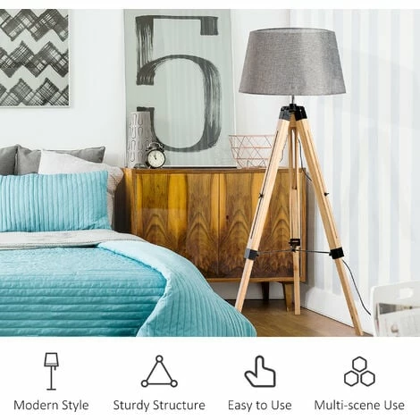 Tripod standing floor lamp from HOMCOM, unique and eye-catching design will brighten your eyes. We totally consider the customers’ needs, presented you a useful and utility product. Comes with linen-touch fabric lampshade and natural wood colour leg, no doubt it has very good-looking appearance. Every night, when you light this living room lamp, it will bring your home peaceful and lovely feeling, makes everything romantic and artistic. Get now!