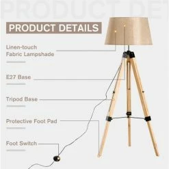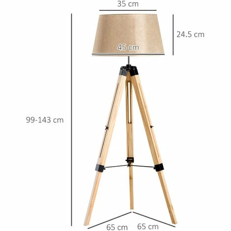 Tripod standing floor lamp from HOMCOM, unique and eye-catching design will brighten your eyes. We totally consider the customers’ needs, presented you a useful and utility product. Comes with linen-touch fabric lampshade and natural wood colour leg, no doubt it has very good-looking appearance. Every night, when you light this living room lamp, it will bring your home peaceful and lovely feeling, makes everything romantic and artistic. Get now!