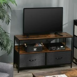 Create a stylish, modern centrepiece in your living room, bedroom, or entertainment room with this HOMCOM TV unit. It adopts dual colours to brighten up your living room perfectly. The top can hold up to 47 inches TV, the middle shelf can hold DVDs, remote control and more, and two collapsible drawer boxes look more stylish and intelligent. This media unit will be a great choice to take home.