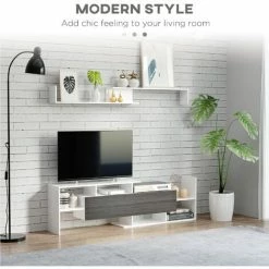 A matching futuristic look is easy – look to this media set from HOMCOM. Comes with a TV storage cabinet and a floating shelf – you can have everything and more stored and displayed together. The TV cabinet features a middle storage compartment with flip-down door and side shelves, with the flat top suitable for your various needs. Use the shelves to show off your favourite photos and ornaments. Both parts are made from particle board for durability and strength.
