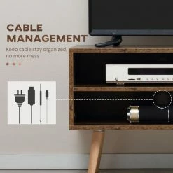 Two-tone style comes with handy storage, thanks to this HOMCOM TV table. It comes with two shelves and a side cupboard – a mix of open and discreet storage for holding all your media stuff with ease. There are two cable holes for organising wires without the mess. Made from MDF with solid wood legs, this is a durable and sturdy piece for the home, office and beyond.