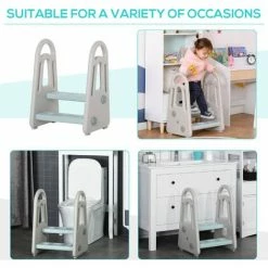 The HOMCOM two-step stool is a brilliant choice for your kid to start their adventures, exploring the world around them. With our ladder, your baby can quickly learn how to use the toilet, wash their face and hands by the bathroom sink, and accompany you when you cook in the kitchen. With the protection of our triangular structure and non-slip handle, your child will gain confidence through self-exploration. Adopts quality material to ensure the safety of your baby. Don’t hesitate to buy it!