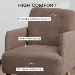 Sink yourself into comfort with this HOMCOM armchair. A simple design in a neutral colour makes it easy to welcome into plenty of spots over the living room, bedroom, the study and beyond. Filled with sponge, this chair is comfortable. The linen-look upholstery is smooth to-the-touch. Complete with wooden legs for full support.