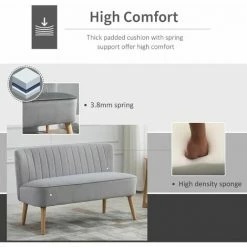 This minimalist double seat sofa from HOMCOM is the perfect spot for the home and office.This compact sofa with extra-wide seat gives you plenty of room to sit comfortably. Solid wood structure with reinforced wood legs ensures stability and durability. It is covered in thick foam for comfort, with soft upholstery for easy cleaning. A stylish addition you’ll love bringing into your home and beyond.