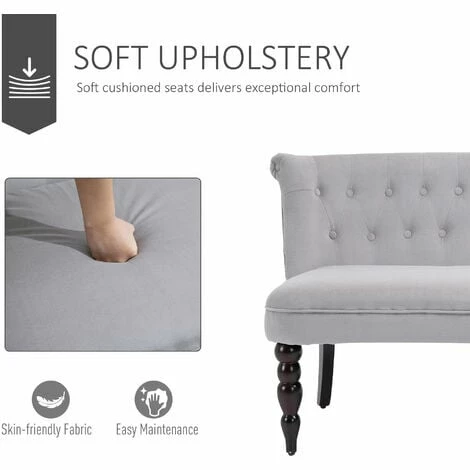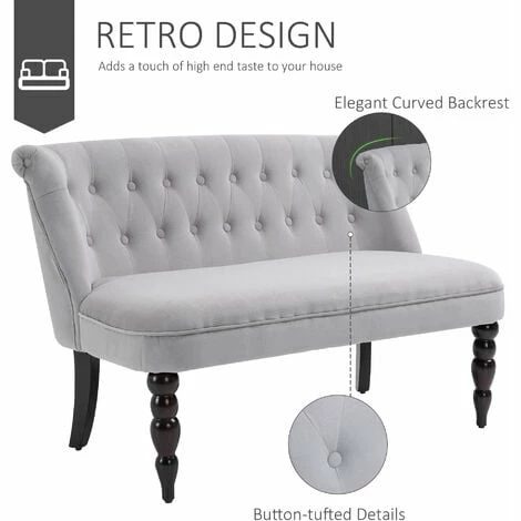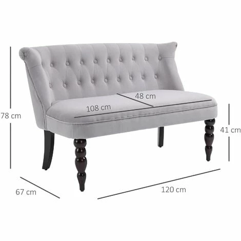 Give your home some regal appeal with this large side seat from HOMCOM. A design inspired by traditional French looks, it features scrolled ends and antique bubbled legs, making it very easy on the eye. The frame, made from rubberwood, ensures a solid structure and is crafted into a two-seater size, with the armless design giving it an open and welcoming feel. Padded all over for comfort, it’s wrapped in luxe velvet-feel upholstery and finished with buttons on the back.