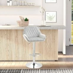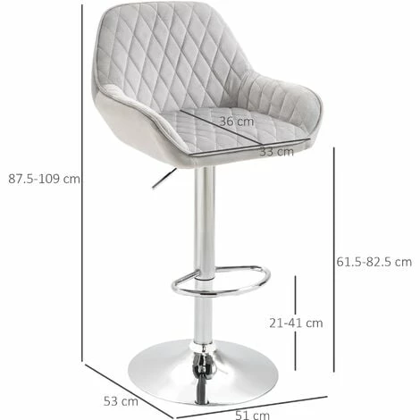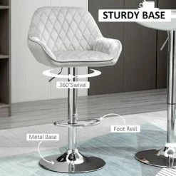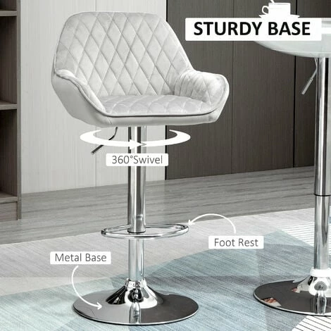 Inject beautiful style into your kitchen counter or bar dining area with this breakfast bar stool from HOMCOM. Lush velvet-touch fabric with diamond stitching serves up high style. Filled with soft sponge to relax the body. With the large round base, which is made from metal, this bar stool keeps upright and steady when in use