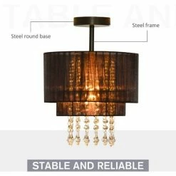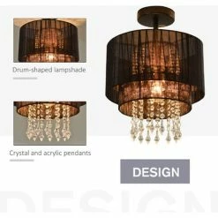 Bring a touch of glitz and glamour into anywhere with this vintage ceiling light from HOMCOM. It features a scattering of crystallite beads which catch the light for lots of sparkle. They are encaged with two drum shades, allowing the light to gently diffuse through