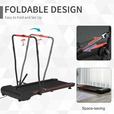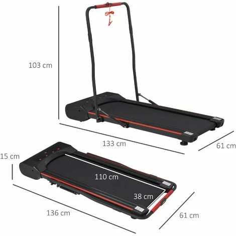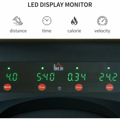 • Safety button and key stops the power immediately when pulled• Double LED screen on the front, keeps you on top of the time elapsed, speed, distance and calories burnt• Can be folded to store, two wheels to move easily