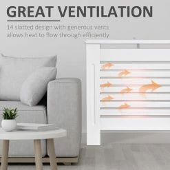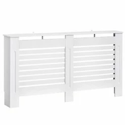 This modern radiator cover cabinet from HOMCOM is a designed to help hide old or unsightly radiator, protect hands from a hot surface and offer extra shelving for ornaments. The slatted design with sufficient vents allows for fluid heat flow while still preventing children and pets from touching the hot radiator surface. Manufactured from durable MDF in white finish for long term service, it is an elegant yet practical addition to your home and office.
