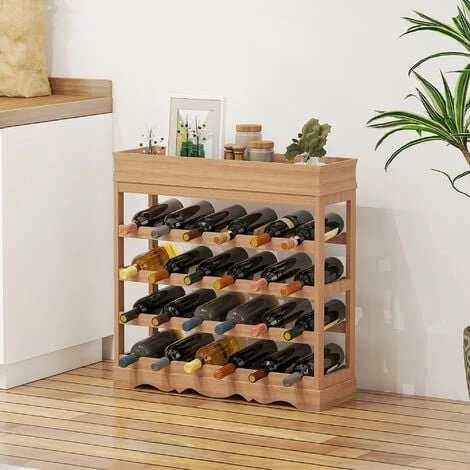 This HOMCOM wine rack is a great is a great addition to anyone who is a wine conesieur. The rack is made from wood in a natural colour, and is able to hold up to 24 bottles on 4 shelves. It also has a counter top for you to open the bottles and serve. This is a great design to fit into any home and decor.
