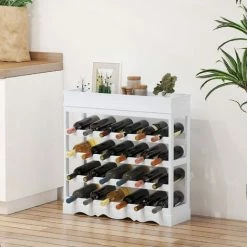 This HOMCOM wine rack is a great is a great addition to anyone who is a wine conesieur. The rack is made from wood in a natural colour, and is able to hold up to 24 bottles on 4 shelves. It also has a counter top for you to open the bottles and serve. This is a great design to fit into any home and decor.