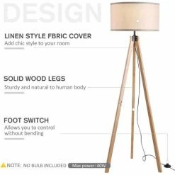 Light up your room in sophistication with our tall floor lamps from HOMCOM. A tripod style base for a unique look, made out of wood which is durable and will stand the test of time. A large cylinder lampshade matches the colour of the base, crafted from linen for style and easy maintenance. The living room lamp comes with a standard E27 bulb fitting and 3m long electric cable with the on/off switch for easy operation. A simple design for a beautiful atmosphere.