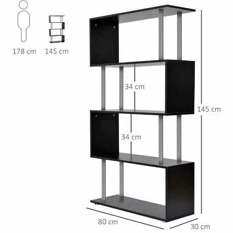 Tired of the same old look? Break away from the norm with the unique and contemporary style of this S-shape bookcase from HOMCOM. Five shelves of storage make it easy to display your favorite books, photos, collectables and more. Best of all, thanks to an open-back design, it doubles as a bookshelf and room divider in one.
