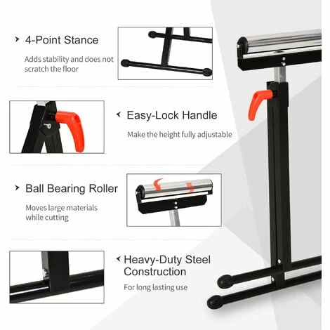 This HOMCOM Roller support solves the problem of requiring stable support and free movement when using larger pieces of wood on uneven ground. It is a must for every carpentry shop or your workshop. Smooth ball bearing rollers provide smooth operation. Compact structure, foldable design, installed in minutes. This tool weighs only 3.5kg, so it is easy to carry, you can fold it flat and put it in any corner of the garage or workshop. All this makes it the perfect workplace companion!
