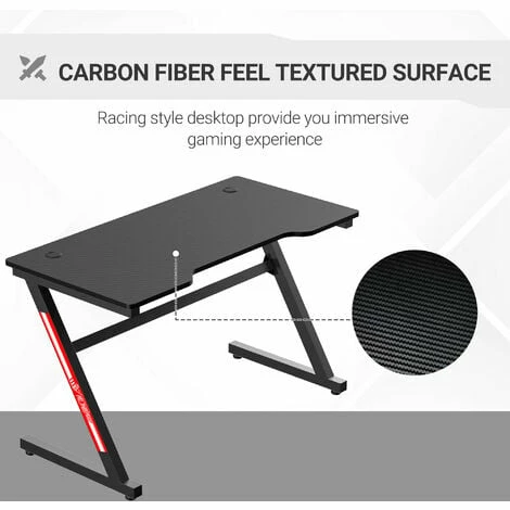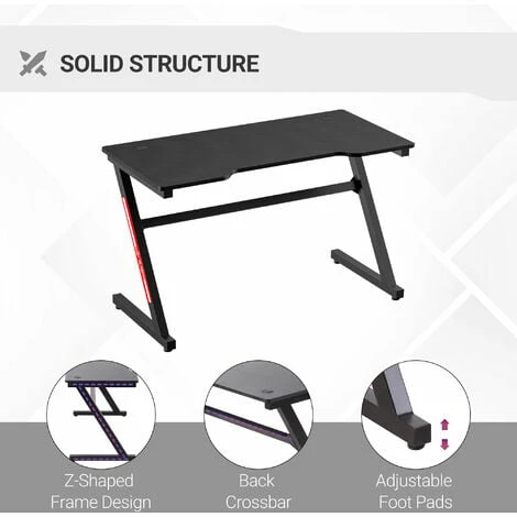 Support your gaming in true cool style – do it with this gaming desk from HOMCOM. Simple yet colourful, this is a fun way to hold your monitors, mouse and keyboard, with its generous sizing giving you lots of space to play. The frame, made from steel, is a tough core, formed into a ‘Z’ shape to help promote balance better. Rounded corners are safer – less potential of hurting yourself. It’s finished with adjustable foot pads to protect your floor.